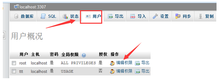 然后点击用户,进入页面后对root “编辑权限按钮 点击下