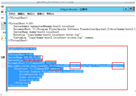 A、进入此路径,用记事本打开httpd-vhosts.conf  文件