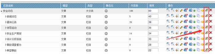 打开后台栏目管理,点击右边的栏目编辑: